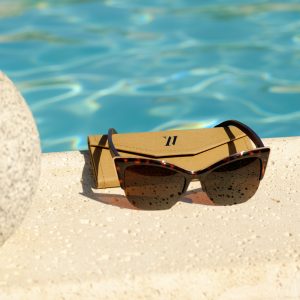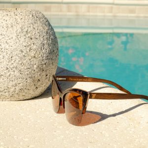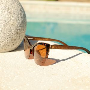 The Vegas sunglasses are a cat-eye design, perfect for those that want an air of playfulness. These brown lenses are CAT3, polarized, and provide 100% UV protection. The light seen through these lenses is soft and warm. The brown bamboo arms are comfortable and sophisticated. These sunglasses come with: case, microfiber pouch and cleaning cloth, box.