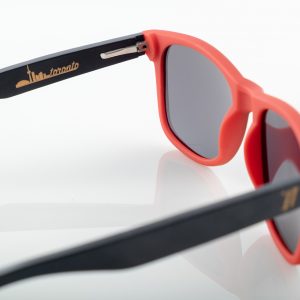 The Red Canyon sunglasses are inspired by the vast beauty of Red Rock Canyon in Nevada. The dark smokey grey lenses are CAT3, polarized, and provide 100% UV protection. The light seen through these lenses is cool and dark. The frames are black and red, and have a matte rubber like finish. The arms are made from natural bamboo, dyed in black, and they feature our Toronto design engraved inside. These sunglasses come with: case, microfiber pouch and cleaning cloth, box.